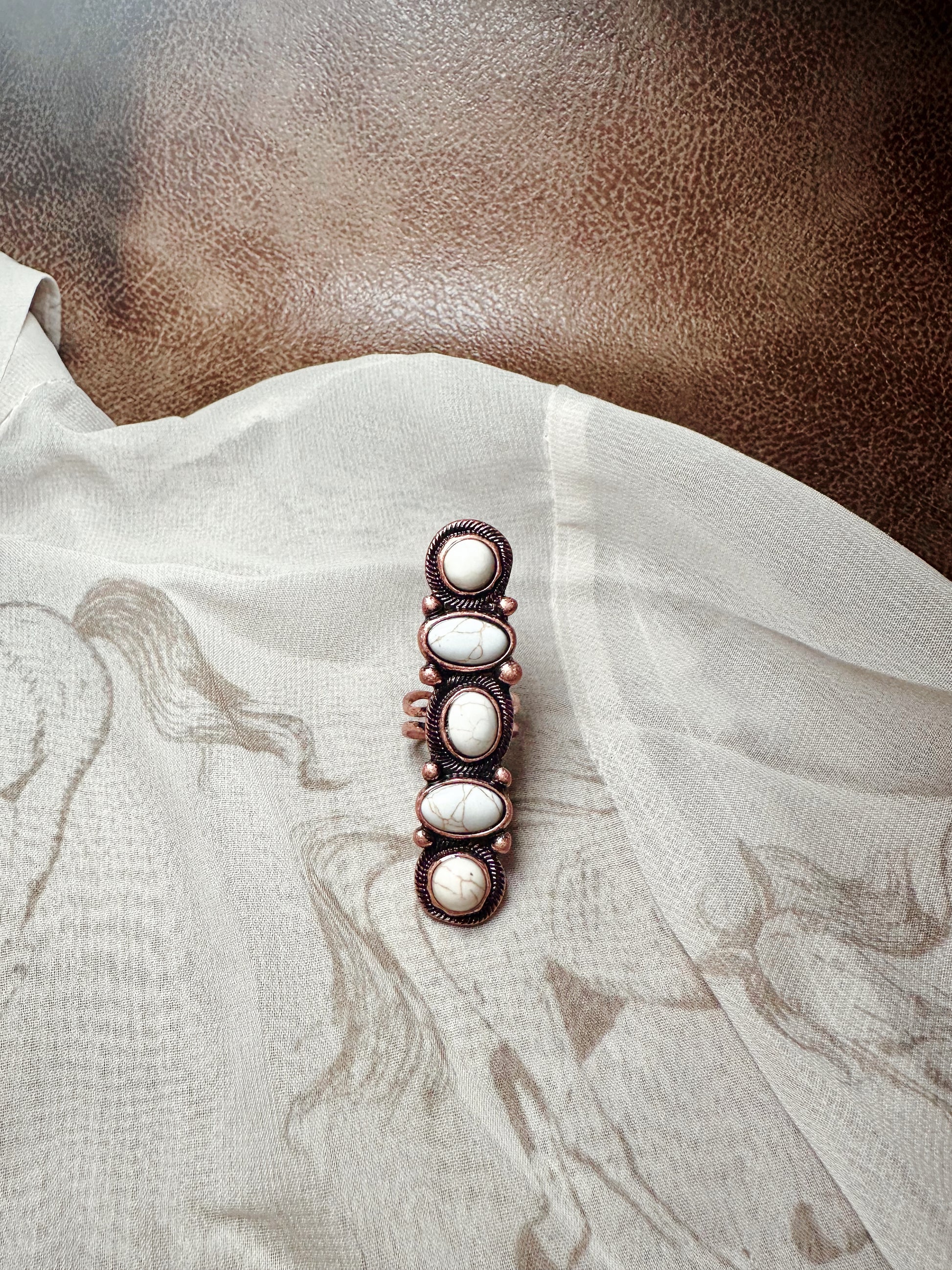 Faux beige gemstone adjustable ring
